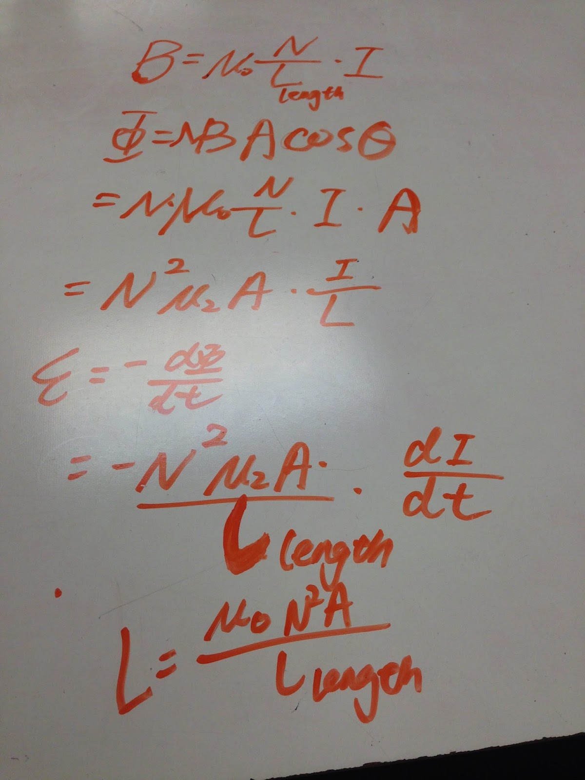 Today, we did lots of online exercise and an interesting experiment. First, we did a online exercise about magnetic flux and EMF. Then professor showed us a experiment, when gave current to a copper stick, the stick will move; if give opposite direction of current, the stick will also move opposite direction. After, we found out a new equation L= u*N^2*A/L. Last, we did another online exercise about RC circuit.